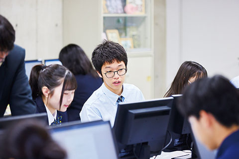総合的な探究の時間では、各自が立てたテーマに対し、必要な情報の主体的な収集・判断・表現・処理・創造をし、定期的な発表の場において受けての状況に合わせた情報発信を行うよう指導をしています。