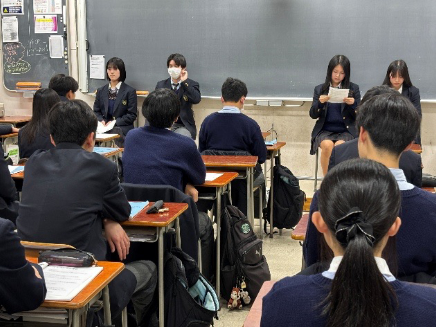 11月5日(水)6時間目に、2年生対象の「上級生講演会」が開催されました。3年生が2年生の教室を訪問し、学習方法や志望校の決め方など、自身の体験を踏まえた貴重なお話をしてくれました。後輩たちは先輩からの実体験を耳にし、次受験に向かっていくのは自分たちなのだという気持ちを強く持ったようでした。